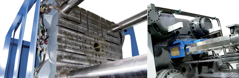 ◆ 超長(zhǎng)的動(dòng)模板支撐滑腳,保證模板在使用沉重模具時(shí)的精度,提升模具的使用壽命;