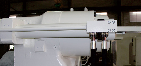 ◆ 以兩支對(duì)角位置的油缸移動(dòng)快速開關(guān)模,并配合動(dòng)模板下方加長(zhǎng)滑腳支撐,使活動(dòng)模板移動(dòng)更平穩(wěn),開關(guān)模定位更精準(zhǔn);