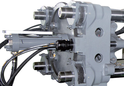 同步液壓精密調(diào)模機(jī)構(gòu)液壓馬達(dá)驅(qū)動(dòng),中心定位齒輪調(diào)模,使調(diào)模運(yùn)行為更順暢快捷。
