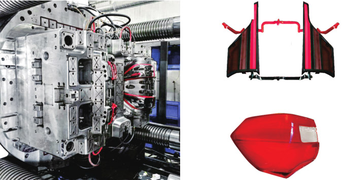 射出部分有兩組獨(dú)立之料管組,同步做射出動(dòng)作,雙色一次成型,可大幅縮短成型周期,增加經(jīng)營(yíng)利潤(rùn)。